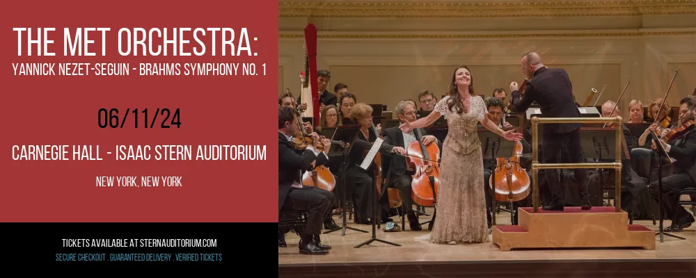 Make sure to keep your schedule for Tuesday 11th June 2024 clear, because The Met Orchestra: Yannick Nezet-Seguin - Brahms Symphony No. 1 is appearing live in concert at the breathtaking Carnegie Hall in New York, New York. This show brings the unsurpassed power of this famous music sensation to the awesome city of New York for a once-in-a-season performance that will leave you blown away. If you have ever witnessed The Met Orchestra: Yannick Nezet-Seguin - Brahms Symphony No. 1 live in concert before, then you know the smashing experience that you can expect. But for everyone else, all you have to know is that critics are calling The Met Orchestra: Yannick Nezet-Seguin - Brahms Symphony No. 1 the “can’t-miss music experience of 2024”! If you want to see their raw talent, relentless energy, and powerful stage presence in person, then you can’t afford to miss out. Click the Buy Tickets button below to order your tickets now!